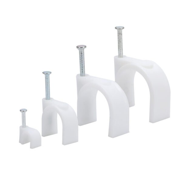 الجزء الرئيسي من مشابك الكابلات المستديرة مصنوع من البولي إيثيلين (PE), مادة توفر توازنًا بين المرونة والمتانة لمقاومة الصدمات اليومية والتآكل الكيميائي.
