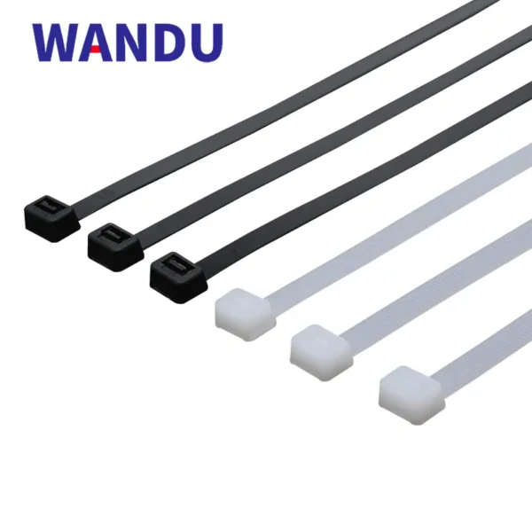 Black and white nylon cable ties can be applied to the fixing of lines in computers, lighting, motors, electronic toys and other products, the fixing of cables and lines in oil pipelines of machinery and equipment, ships, and can also be used in agriculture, horticulture, and handicrafts to tie up items. According to the width can be divided into small size cable ties (W 2.5mm TS 18lbs), medium size cable ties (W 3.6mm TS 40lbs), standard size cable ties (W 4.8mm TS 50lbs), heavy size cable ties (W 7.6mm TS 100lbs), Extra heavy duty cable ties (W 9mm TS 155lbs).